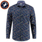 * Liquor bottle pattern navy shirt with cuff detail.