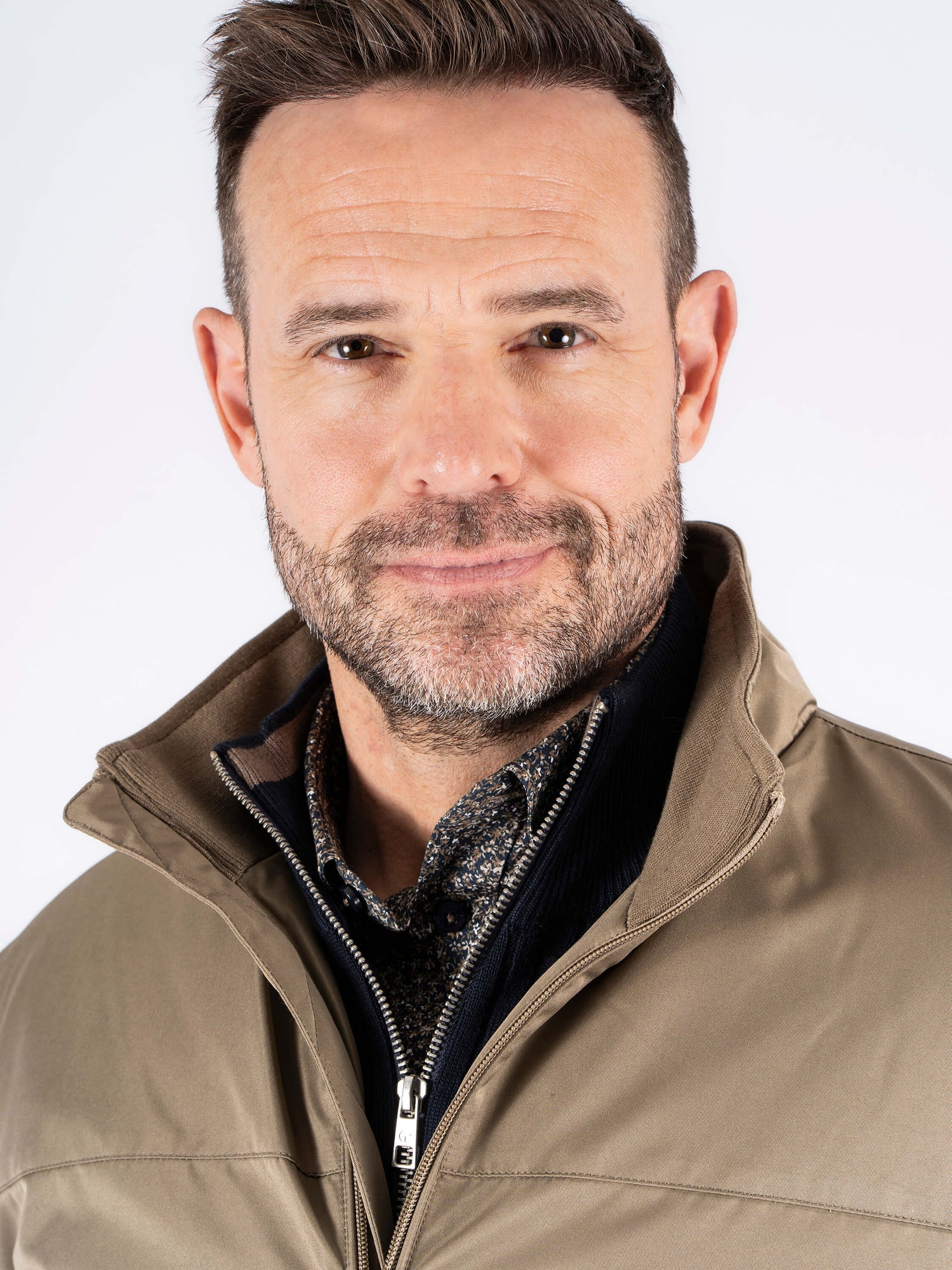 * Quilted brown harrington with zip pockets.